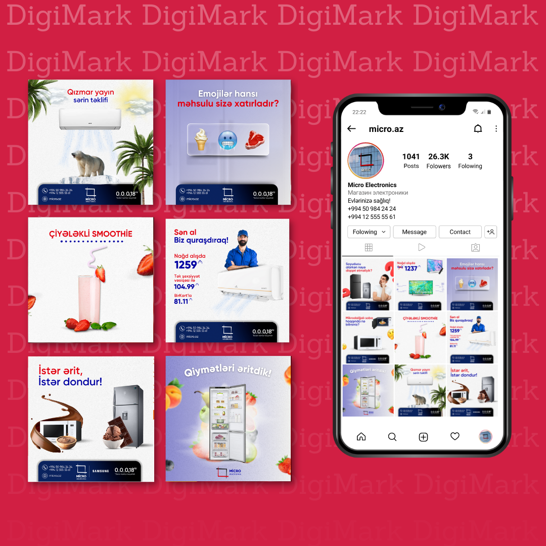 Micro Electronics-keyfiyyətli elektronika məhsulları ilə tanınan ünvandır. Fərqli ölkələrdən keyfiyyətli məhsulları birbaşa müştərilərinə təqdim edən şirkət müştəriləri üçün çatdırılma və digər xidmətləri əlçatan edərək məmnunluq yaratmağa nail olmaqdadır. DigiMark komandası olaraq yaratdığımız sosial media strategiyası vasitəsilə brendin üstünlüklərini insanlara çatdırmağa çalışmışıq. Şirkətlə 2023-cü ilin iyun ayından etibarən əməkdaşlıq davam etdirilir.